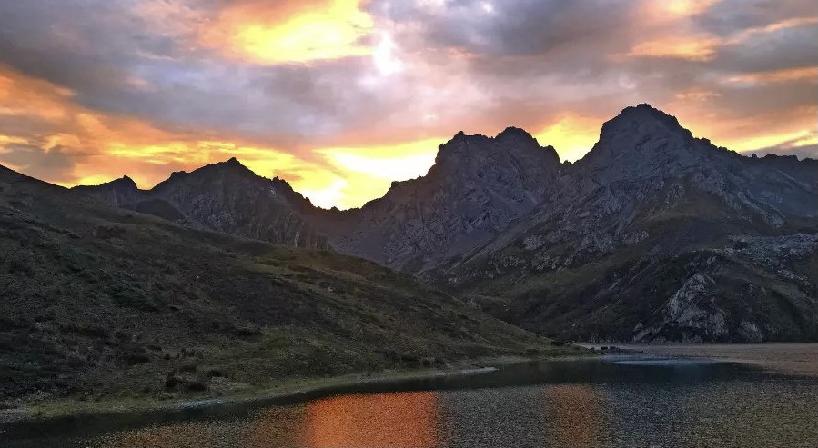 红星海子--雪山倒映,日照金山绝美!
